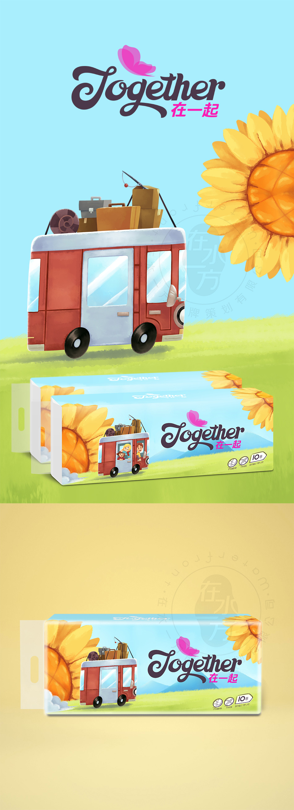服務方案:深入挖掘“在一起”品牌內(nèi)涵與感性因素,并為品牌形象注入有效的理念價值,賦予標志與包裝形象一致的視覺調(diào)性,通過完善合理的品牌形象體系來提升附加值,增強目標受眾對品牌的認知與關注。