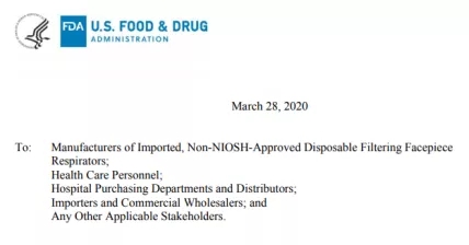 3月28日,在美國FDA新出臺的一次性呼吸器緊急使用授權(quán)(EUA)清單中,把中國KN95防護產(chǎn)品和GB2626-2006標(biāo)準(zhǔn)的產(chǎn)品都取消掉了。