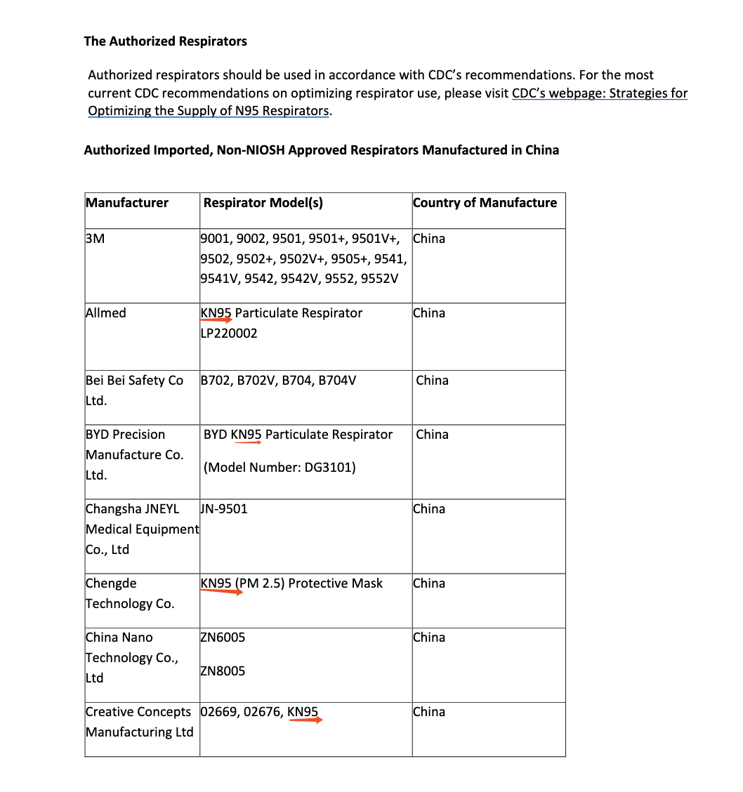 美國疾病控制中心(CDC)曾表示,KN95口罩的有效性與N95相同,是“供不應(yīng)求的”N95口罩的眾多“合適替代品”之一。根據(jù)全球最大的口罩制造商3M的說法,KN95 與N95口罩“等效”,并且“可以預(yù)期其功能非常相似”。