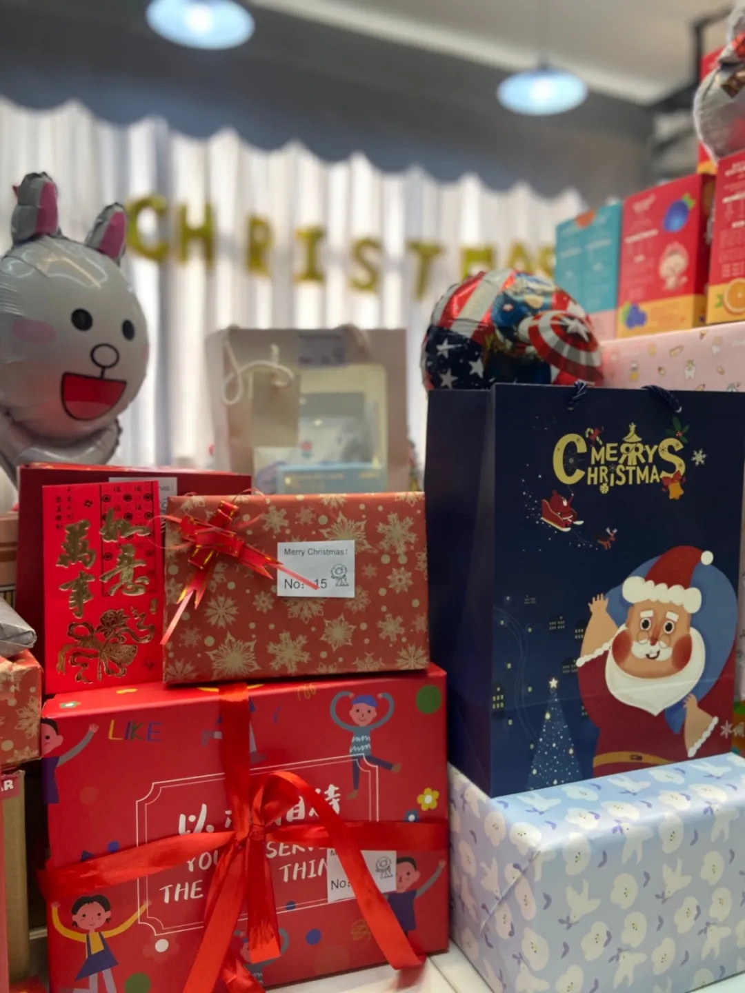 喏,臺(tái)上滿滿當(dāng)當(dāng)?shù)木?,大的小的,紅的綠的,還有會(huì)發(fā)光的,禮應(yīng)如此!
