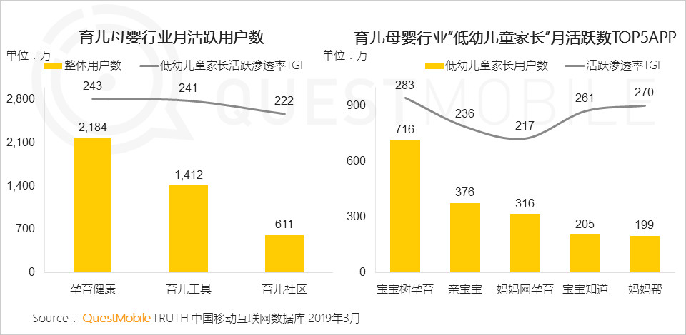“低幼兒童家長”(泛指0-6歲家長人群)人群關(guān)注領(lǐng)域包括在線消費(fèi)、幼兒教育、育兒社區(qū)、親子旅游。2016年“全面二孩”政策實(shí)施以后,中國新生兒童數(shù)量經(jīng)歷了兩年快速增長后有所回落,學(xué)齡前兒童數(shù)量維持穩(wěn)定態(tài)勢,但二胎政策帶來人口利好,低幼經(jīng)濟(jì)價值凸顯,據(jù)QuestMobile數(shù)據(jù)顯示,目前中國0-6歲兒童人數(shù)約1億,0-6歲兒童消費(fèi)市場規(guī)模已超1.5萬億,“低幼兒童家長”用戶規(guī)模快速增長已經(jīng)接近2.7億,在中國家庭中,超八成的家長每年在孩子的教育方面支出均在5000元以上,“寶媽”是教育決策的主要決策者,也就是說,每年在那些呱呱哭叫的嬰幼兒的小手里,0-6歲的媽媽們足足攥著“真金白銀”。