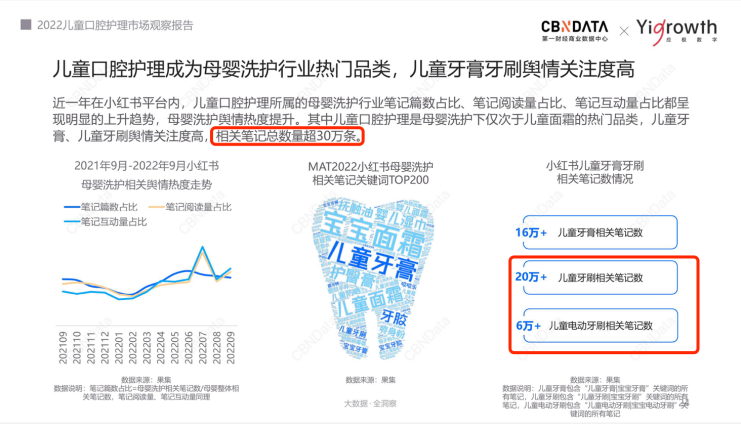 具體來看,相關(guān)筆記總數(shù)量超30萬條。其中,關(guān)于兒童牙刷(包括傳統(tǒng)和電動)的筆記共有26萬+。也正因此,我國兒童基礎(chǔ)口腔護(hù)理產(chǎn)品(包括牙刷和牙膏)的滲透率正在逐步提升,2016年只有28.4%,預(yù)計到2022年將達(dá)到38.7%。