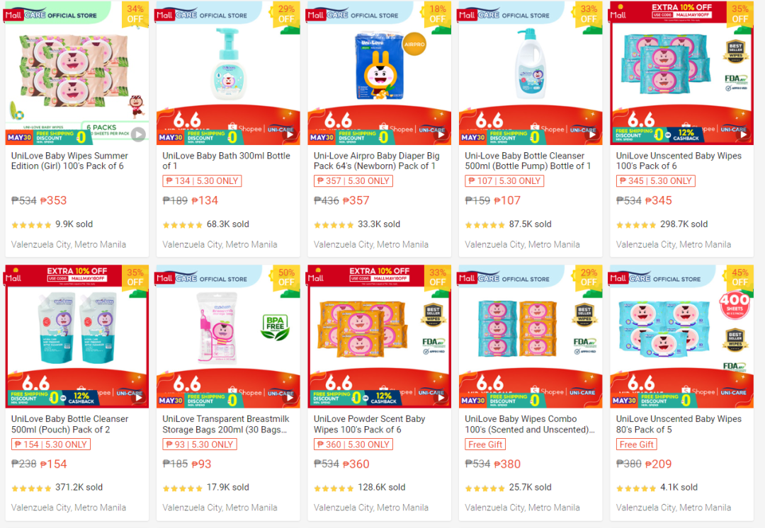 由于該品牌入局較早,有了一定的粉絲基礎(chǔ),以及品牌影響力,所以在shopee和TikTok Shop平臺(tái)銷量可觀,品牌將旗下的產(chǎn)品分割成不同的子品牌,便于寶媽消費(fèi)者查看用品,而shopee站點(diǎn)的首頁(yè)可以發(fā)現(xiàn),該品牌目前推出多種活動(dòng),并且近期正在準(zhǔn)備shopee的6.6大促。