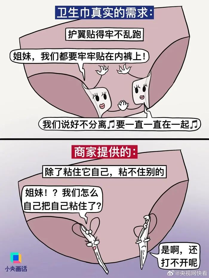 【#別拿消費(fèi)主義那套來做衛(wèi)生巾#】想不通,衛(wèi)生巾這種每個(gè)月都要用的東西,怎么會(huì)做得又貴又難用。商家以為我需要:加冰、加熱、加玻尿酸、粉嫩包裝、明星代言……實(shí)際我需要的:干凈衛(wèi)生、護(hù)翼好貼、安全不漏、價(jià)格適中。衛(wèi)生巾是日用品,別搞消費(fèi)主義輕奢那一套。(繪圖.阿彬的漫畫生活)#有種女性貧困叫月經(jīng)貧困#.jpg)