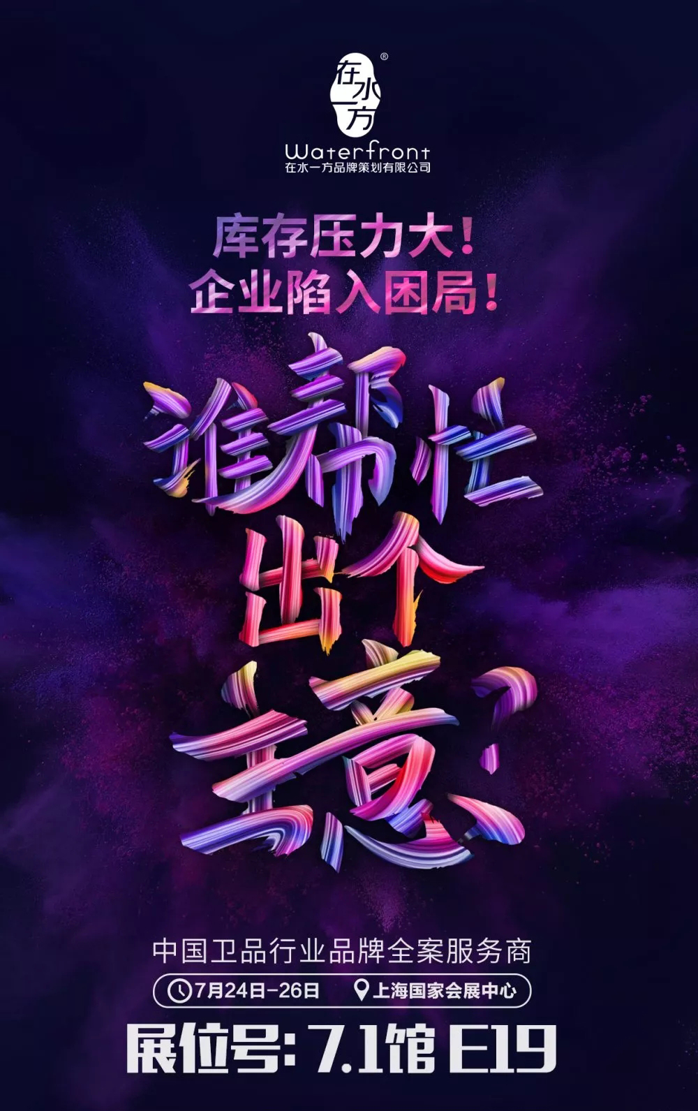 7月24日到26日,如果你剛好有空,在水一方誠(chéng)意邀你到上海國(guó)家會(huì)展中心7-1E19展位坐坐,一同交流行業(yè)觀點(diǎn),碰撞創(chuàng)意,展望新機(jī)。